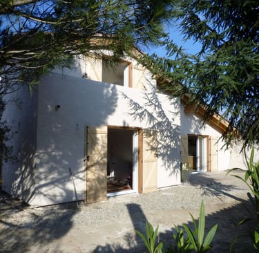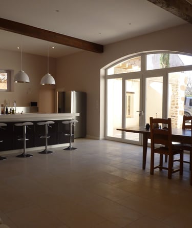 Concept was to rebuild a new build autonomous house, in the heart of a 17th century village. The client's wishes was to buil a retreat for the whole family to enjoy, sometimes individually or sometimes all together.